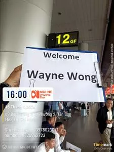 Mui Ne Private Car(Reviews from Google Maps and Tripadvisor) – company sign & pickup boards at the airport